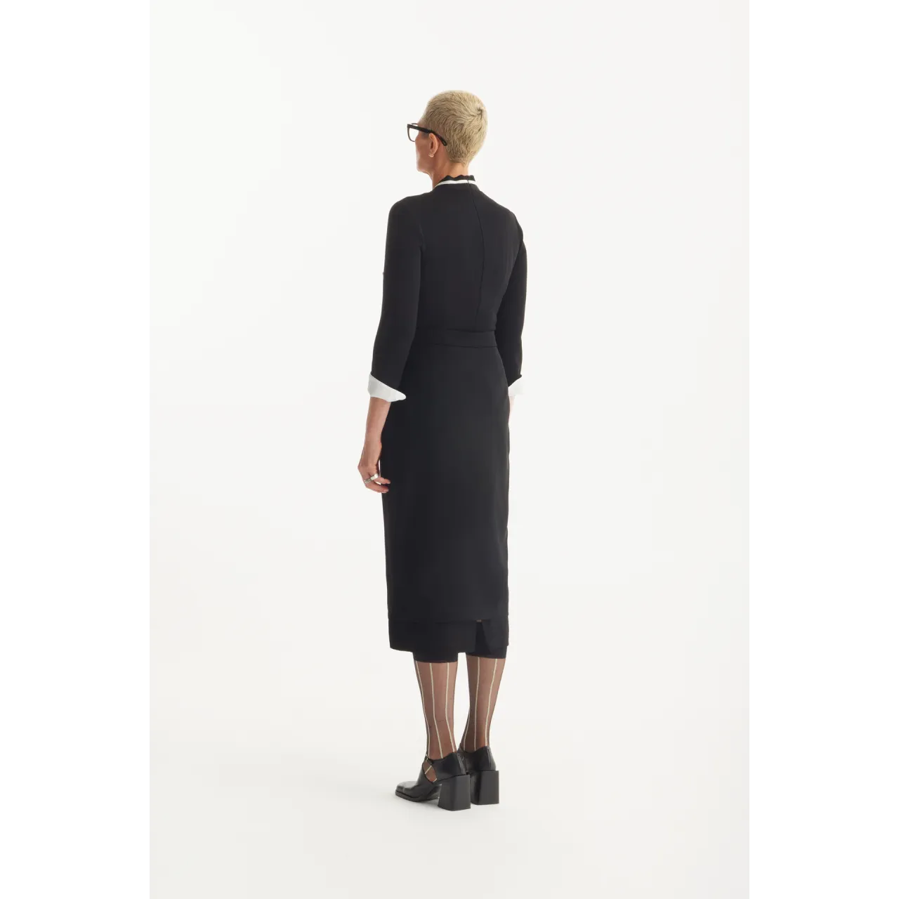 A fitted midi dress designed for timeless elegance and refined silhouettes. The clean structure enhances the figure while remaining versatile for formal events or elegant evenings. Style with classic pumps and statement jewellery.
